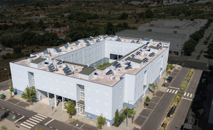 Localizada em frente ao Parque de Feiras e Exposições, no Bairro da Abrunheira, a nova residência do Politécnico de Portalegre ocupa um lote composto por oito blocos, com 44 apartamentos e reúne condições para alojar 203 estudantes.